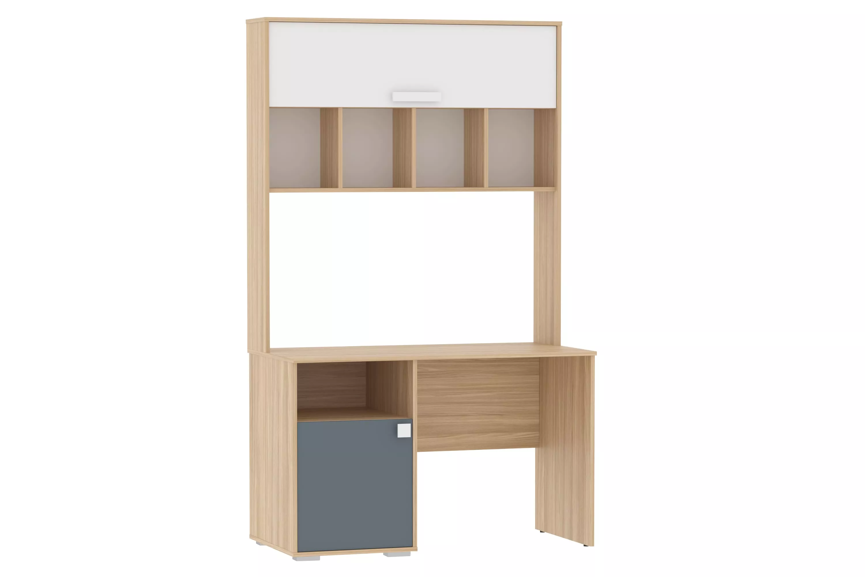 Комплектация №4 включает: кровать с выдвижным ящиком для хранения белья. Письменный стол с дополнительной надстройкой для оптимизации рабочего уголка вашего ребенка. Благодаря встроенным газлифтам фасад открывается мягко и бесшумно. Максимальный доступ к книгам и школьным принадлежностям, хранящимся внутри надстройки, обеспечен. Шкаф оснащен полками и овальной штангой для хранения одежды на вешалках.