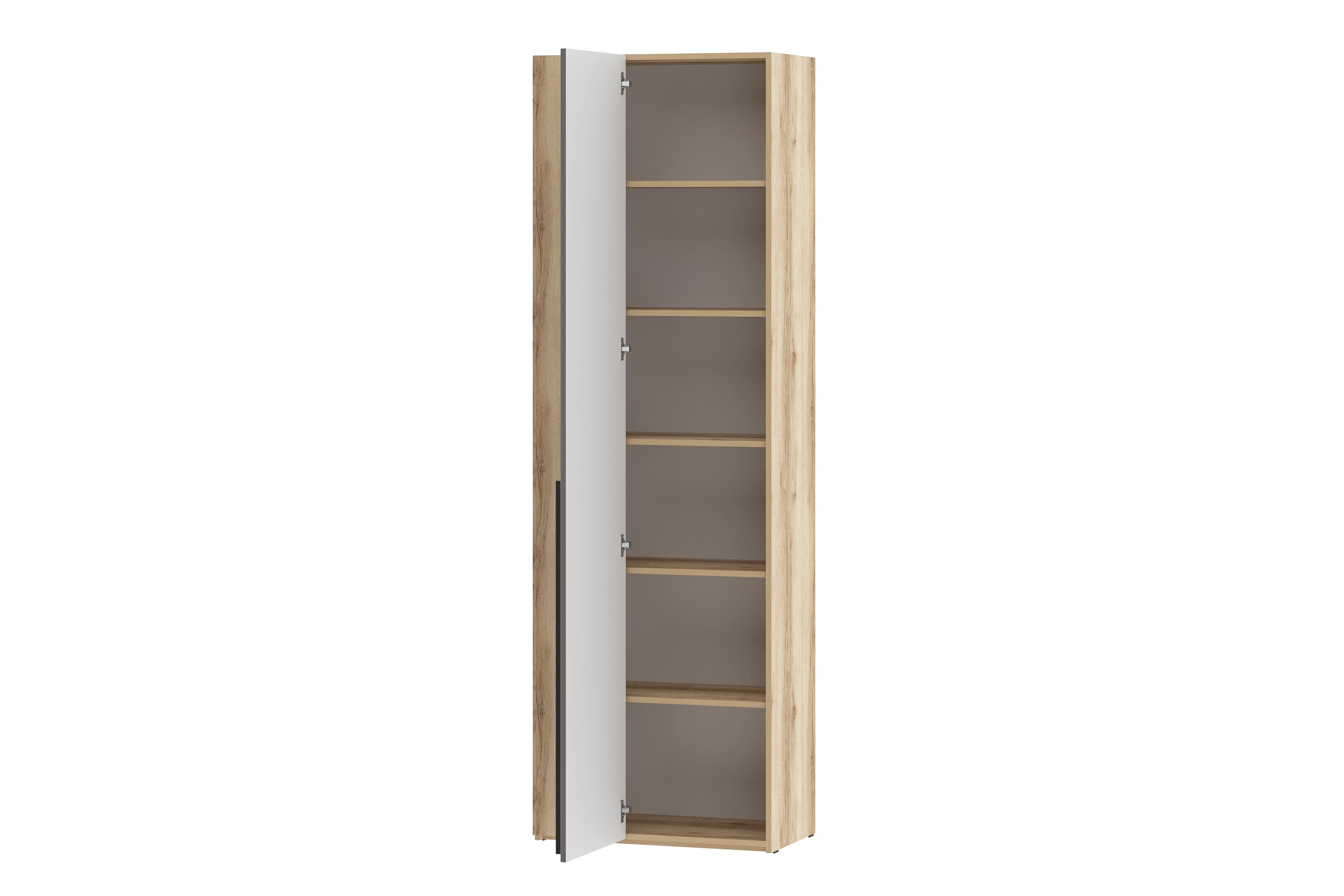 Базовый дизайн комплектации станет универсальным решением для интерьера и будет актуальным на протяжении долгого времени. Модульная композиция включает антресоли, двухдверный и однодверные шкафы со множеством полок и выдвижной штангой для организации хранения вещей, а шкаф 200.08 можно положить документы, ключи и все необходимые вещи.