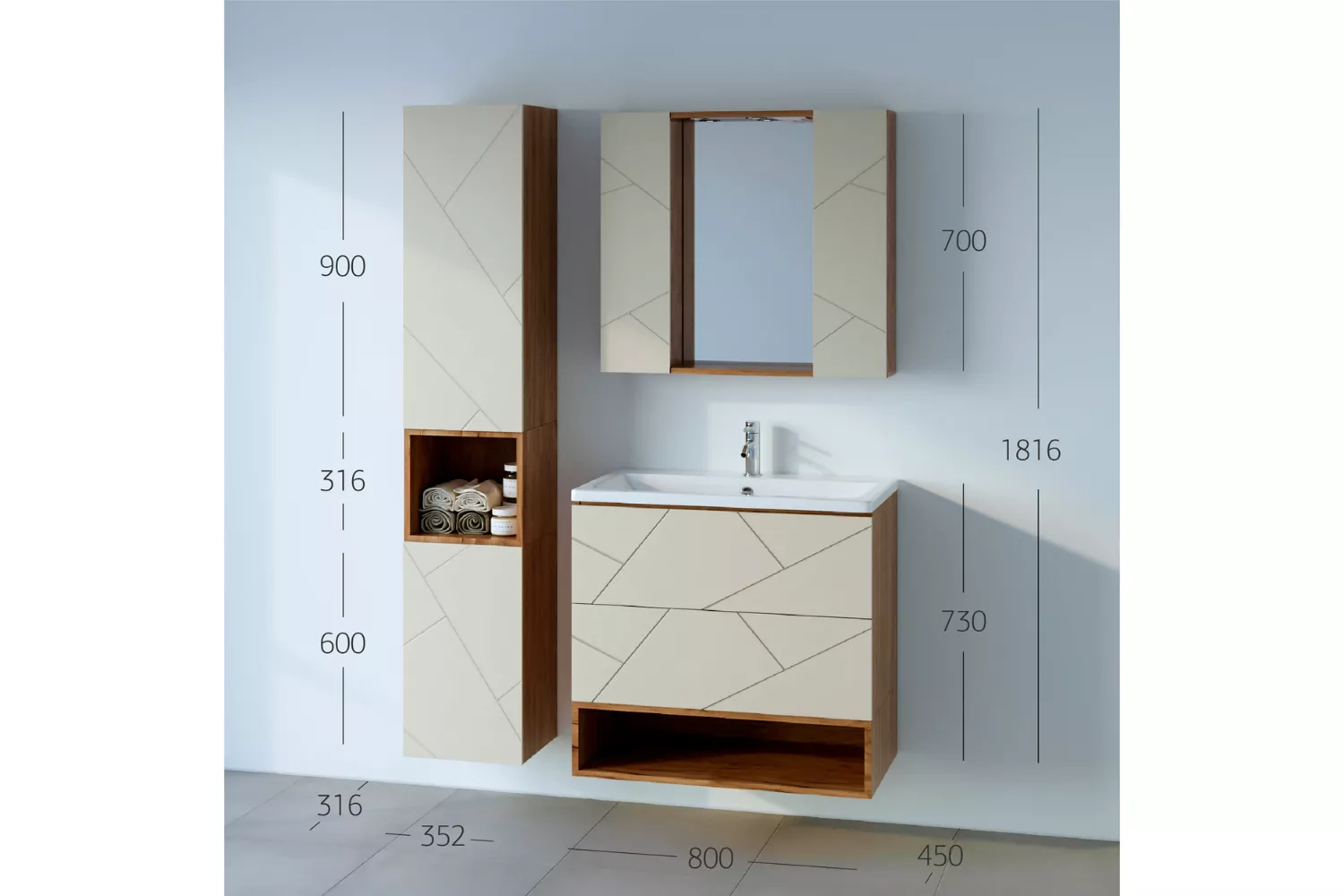 Размеры: Ш 902 x Г 316 x В 350