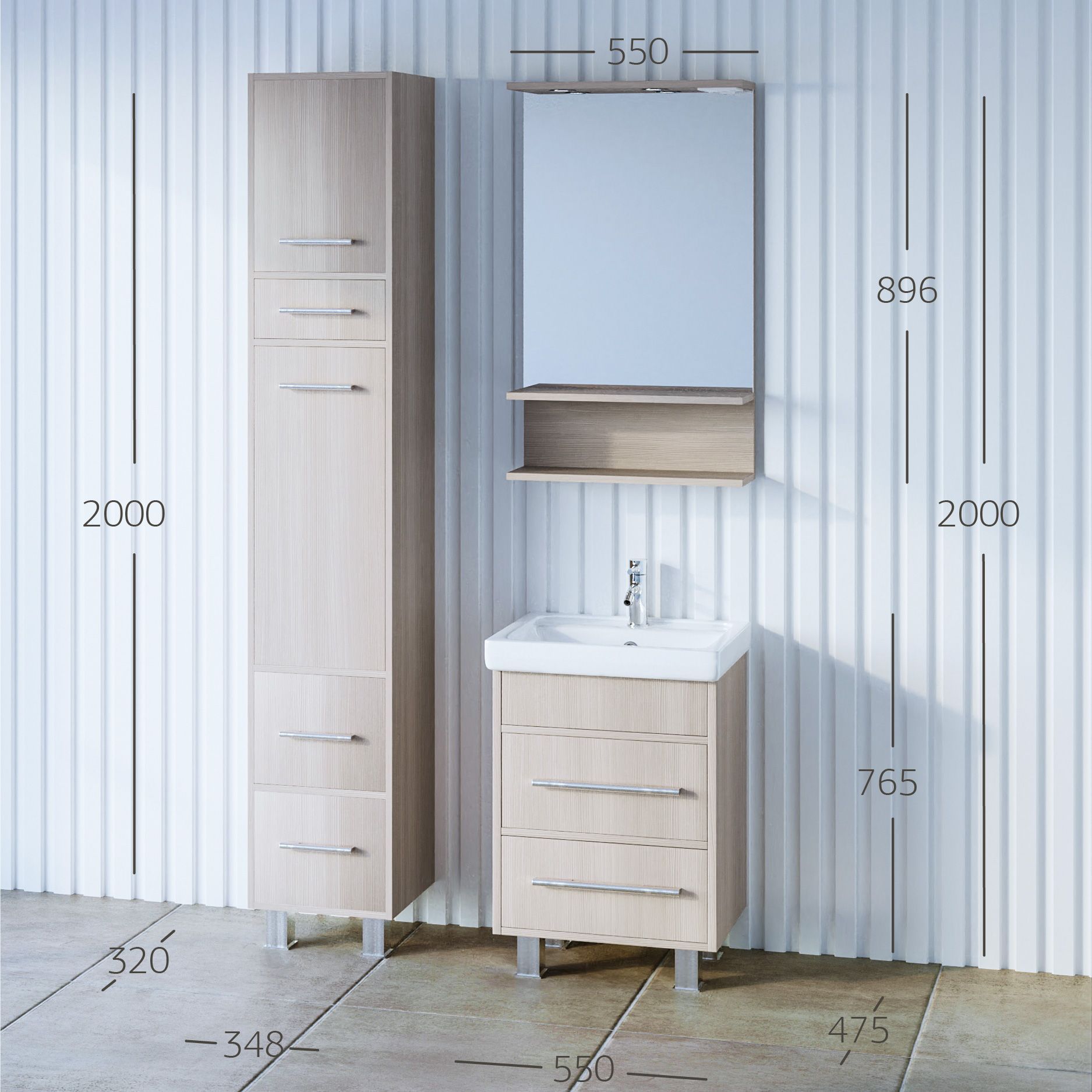 Размеры: Ш 550 x Г 156 x В 898