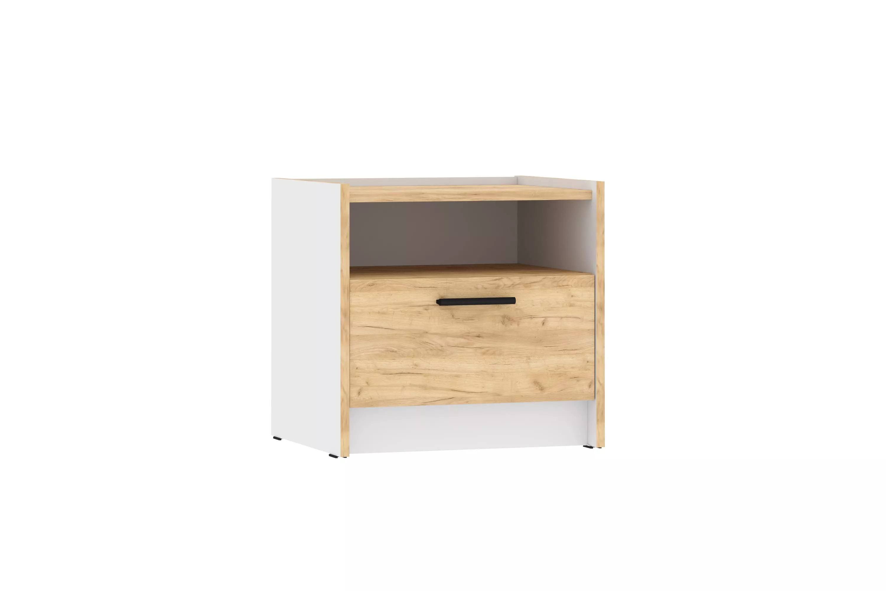 Модульная композиция включает кровать с оригинальным парящим эффектом, который облегчает уборку в комнате, а в ящике можно удобно разместить постельное белье. Система хранения представлена двустворчатым шкафом и тумбой, в которых можно повесить одежду на вешалках и расположить белье в выдвижных ящиках. Все необходимые документы будут всегда под рукой на полках прикроватной тумбы.