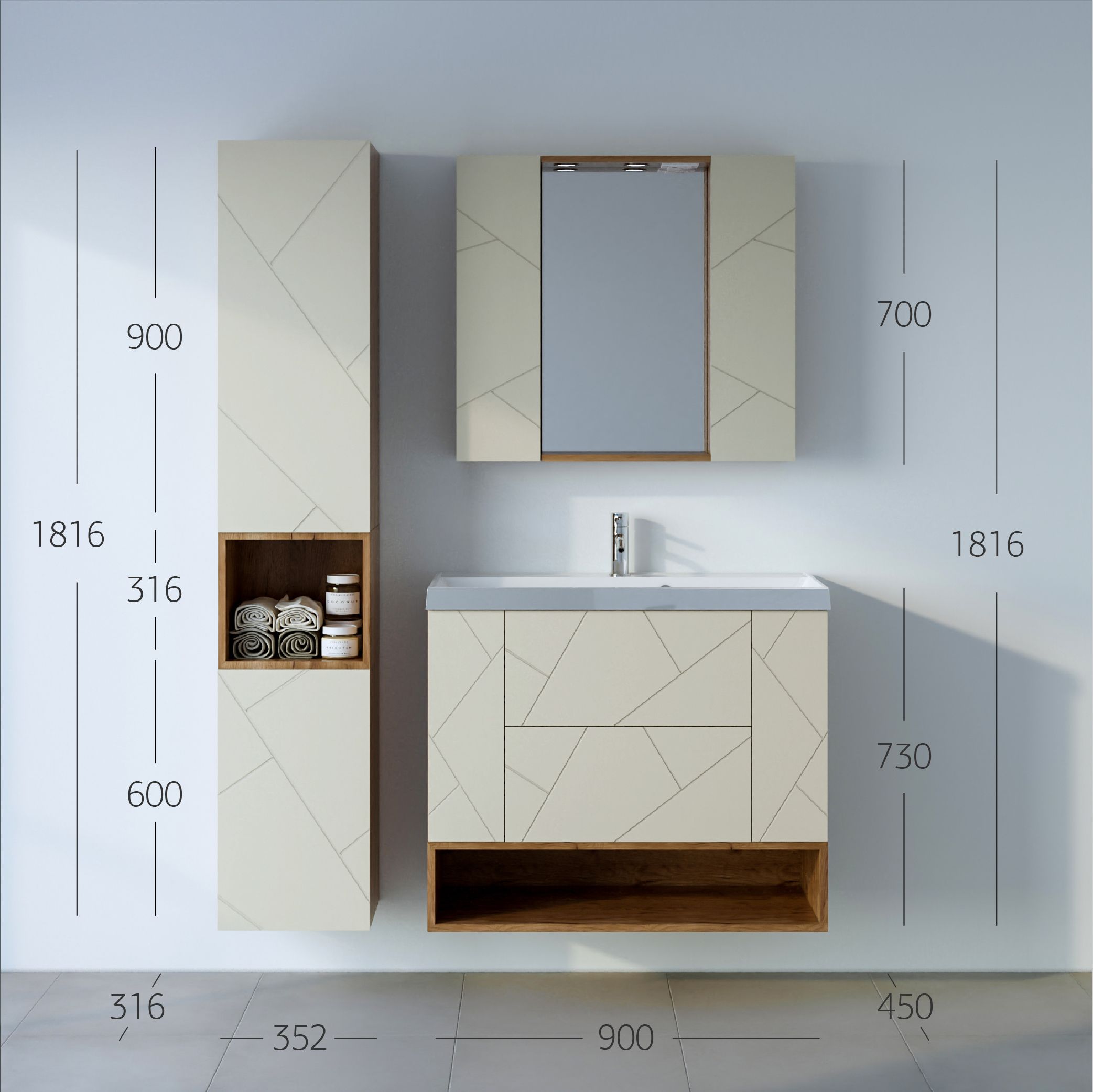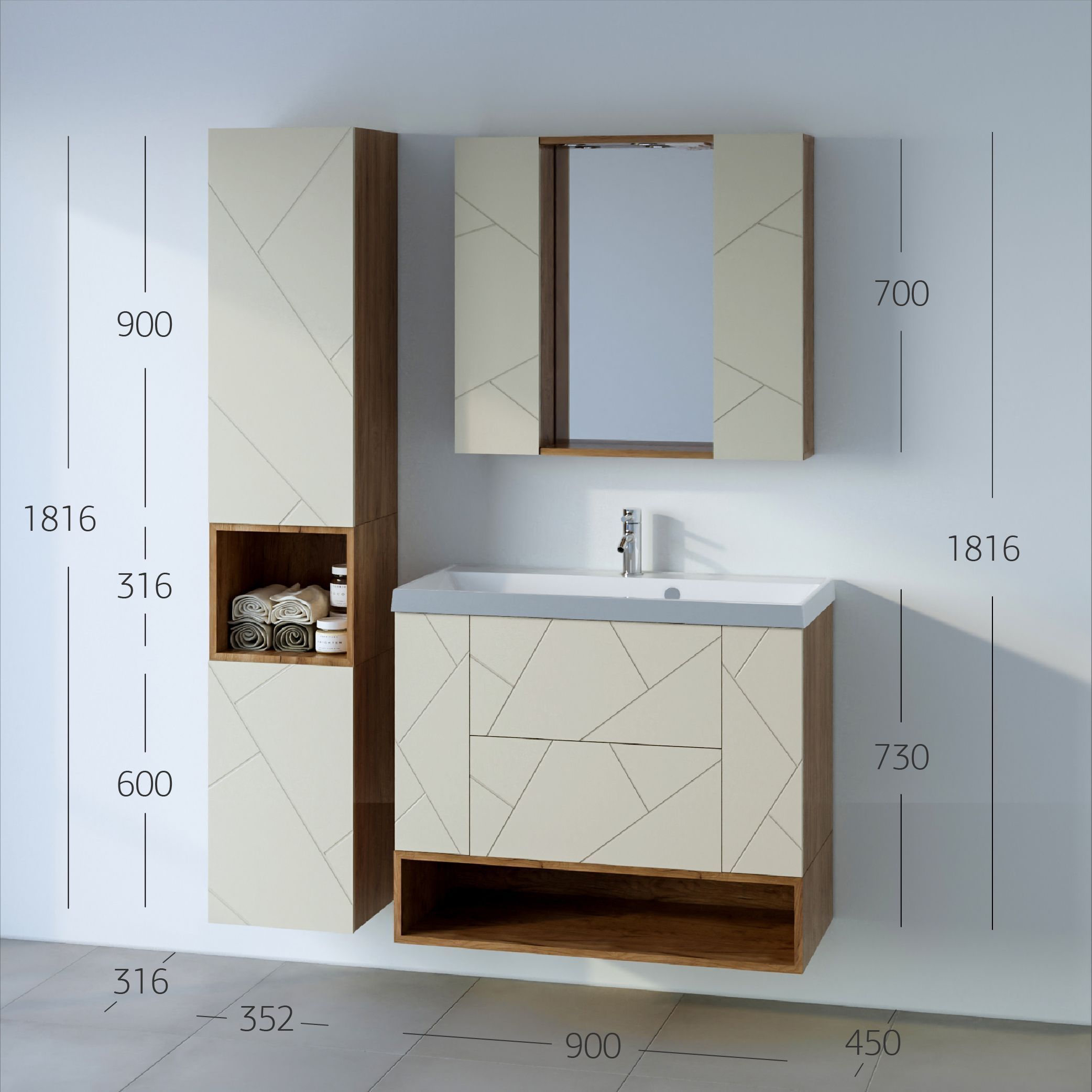 Размеры: Ш 900 x Г 450 x В 730