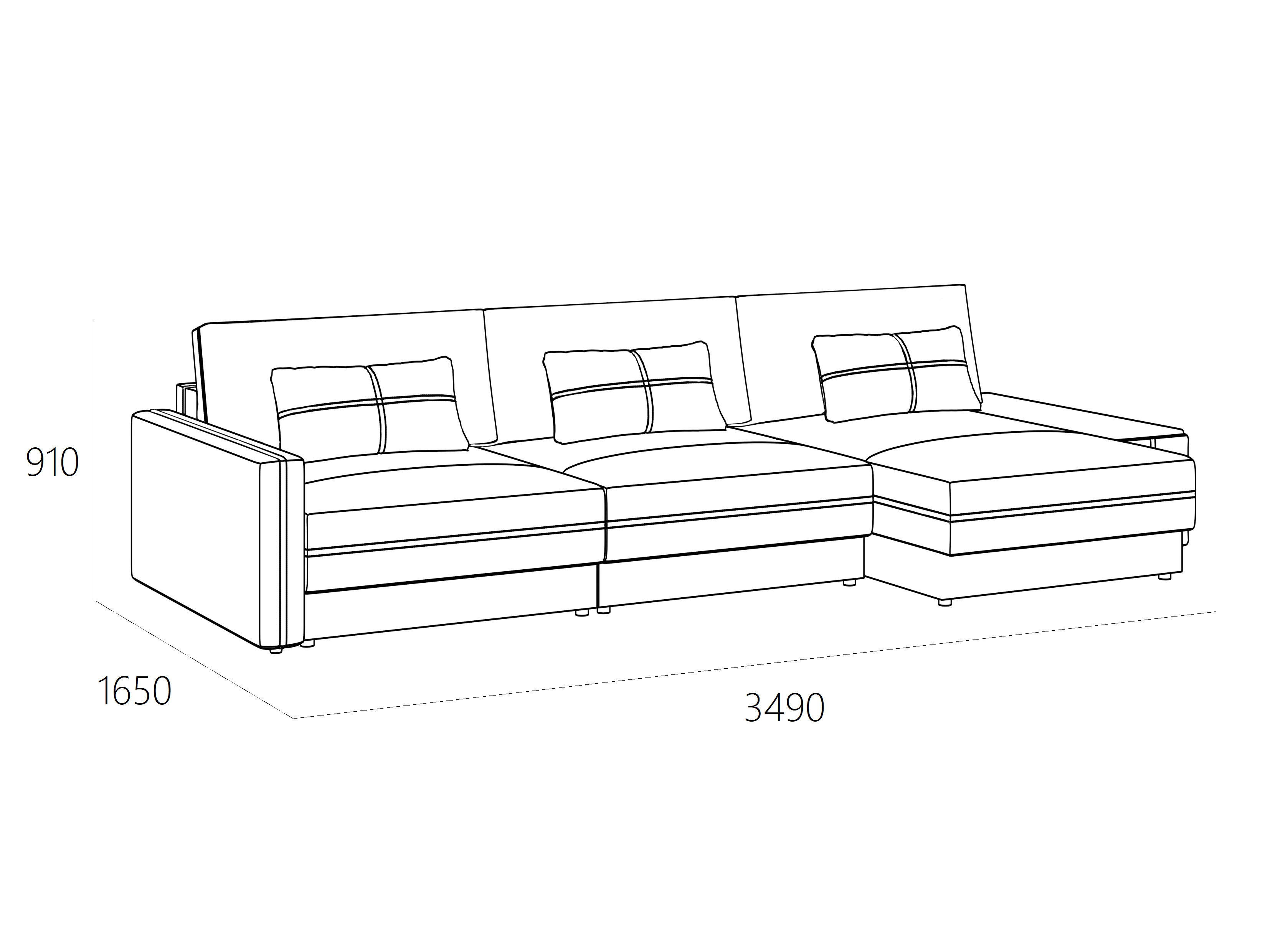 Размеры: Ш 3490 x Г 1650 x В 910