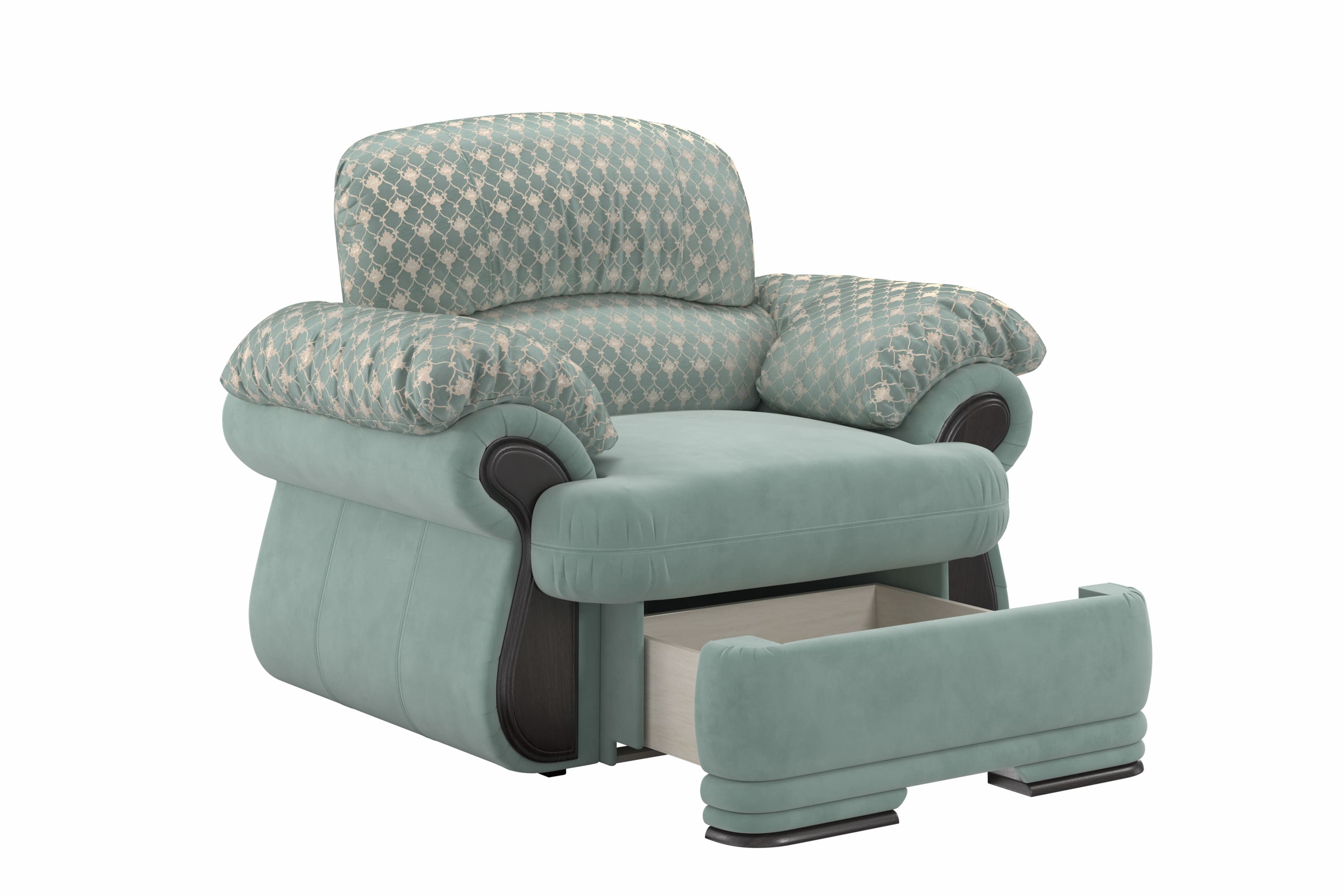 Уютное мягкое кресло Мадрид великолепное украшение интерьера гостиной, выдержанной в классическом стиле. Подлокотники дополнены декоративными подушками ,а дополнительно выкатной механизм для ног, позволит раслабится и получить удовольствие.Кресло Мадрид идеально подходит тем, кто любит «утопать» в кресле