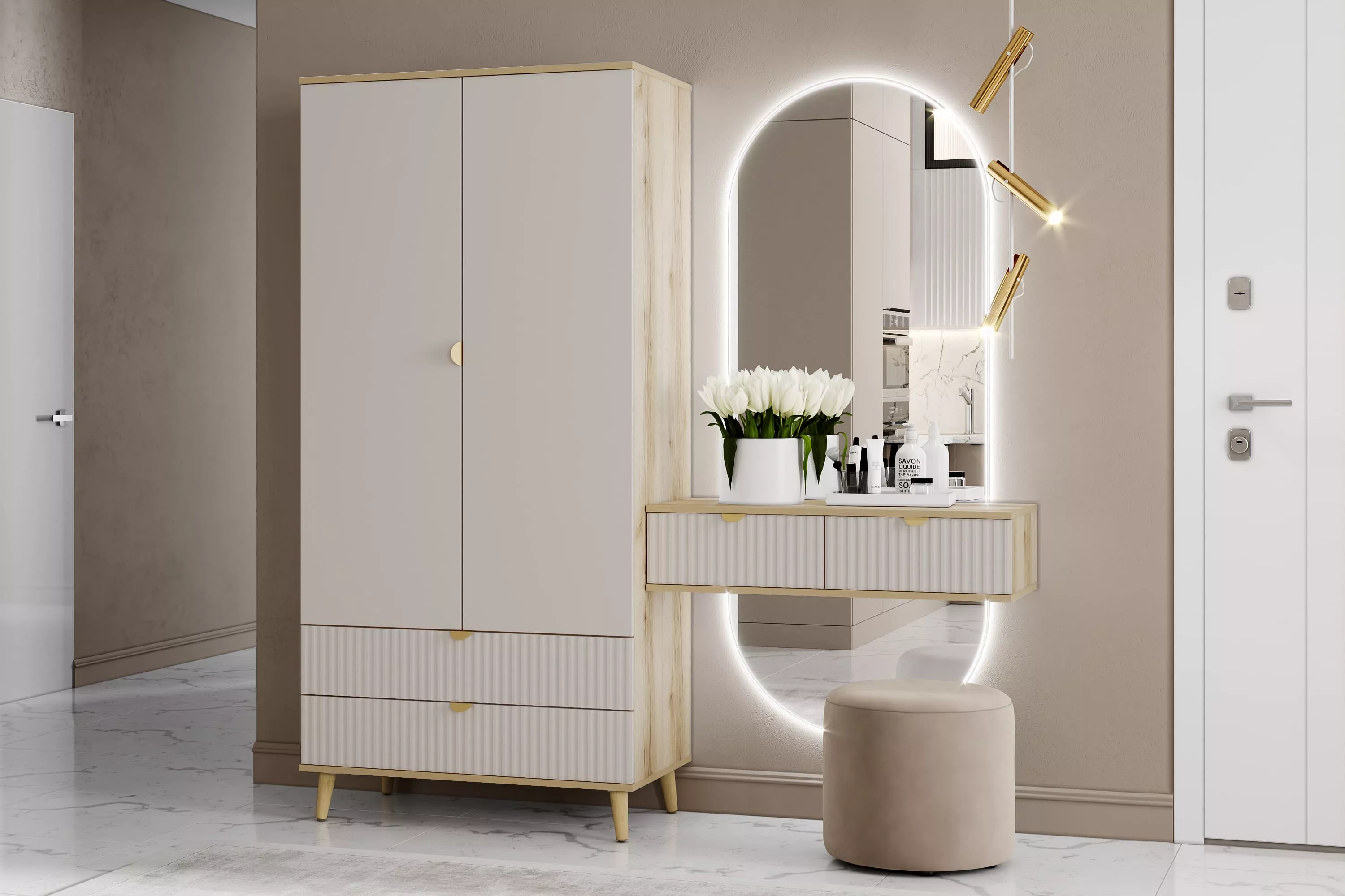 Каркас изготовлен из ЛДСП, который не подвержен механическим повреждениям и имеет большой срок эксплуатации.