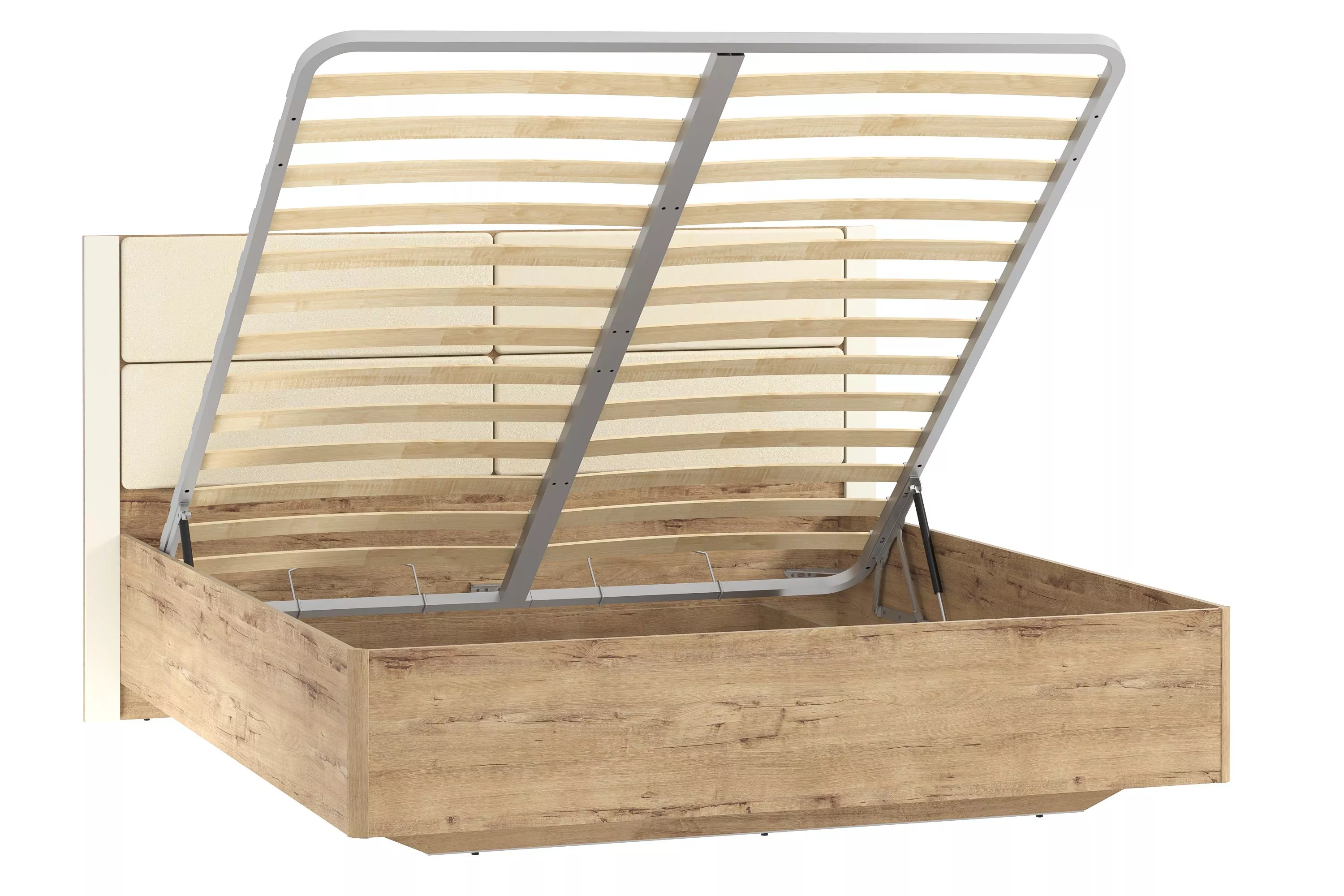 Очень красивая кровать! А главное много подкроватного места, все помещается – подушки, одеяла, заказала в цвете софт панакота, приятный светлый цвет