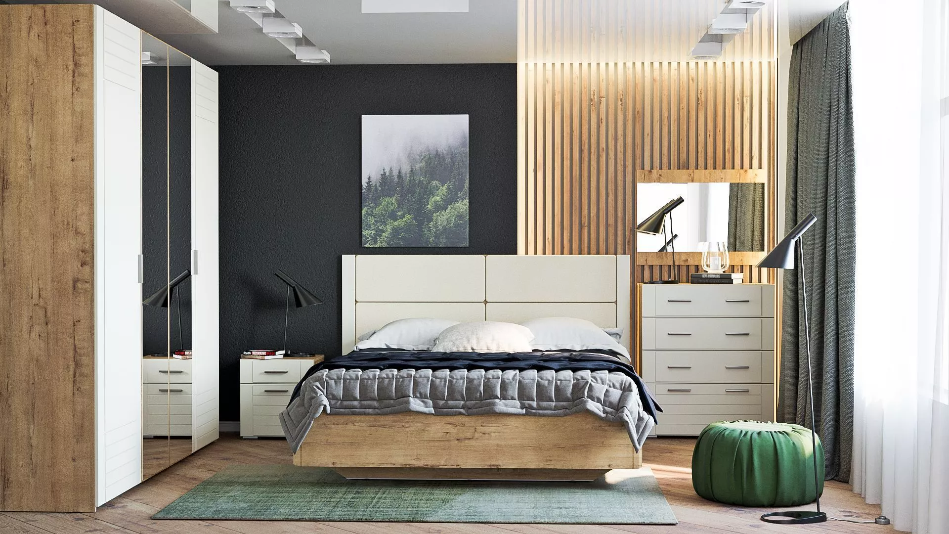 Покупала в цвете софт графит вместе с тумбами, прекрасно вписались в спальню. Заказала со сборкой, ребята быстро управились, спасибо им! Теперь наслаждаемся спокойным сном