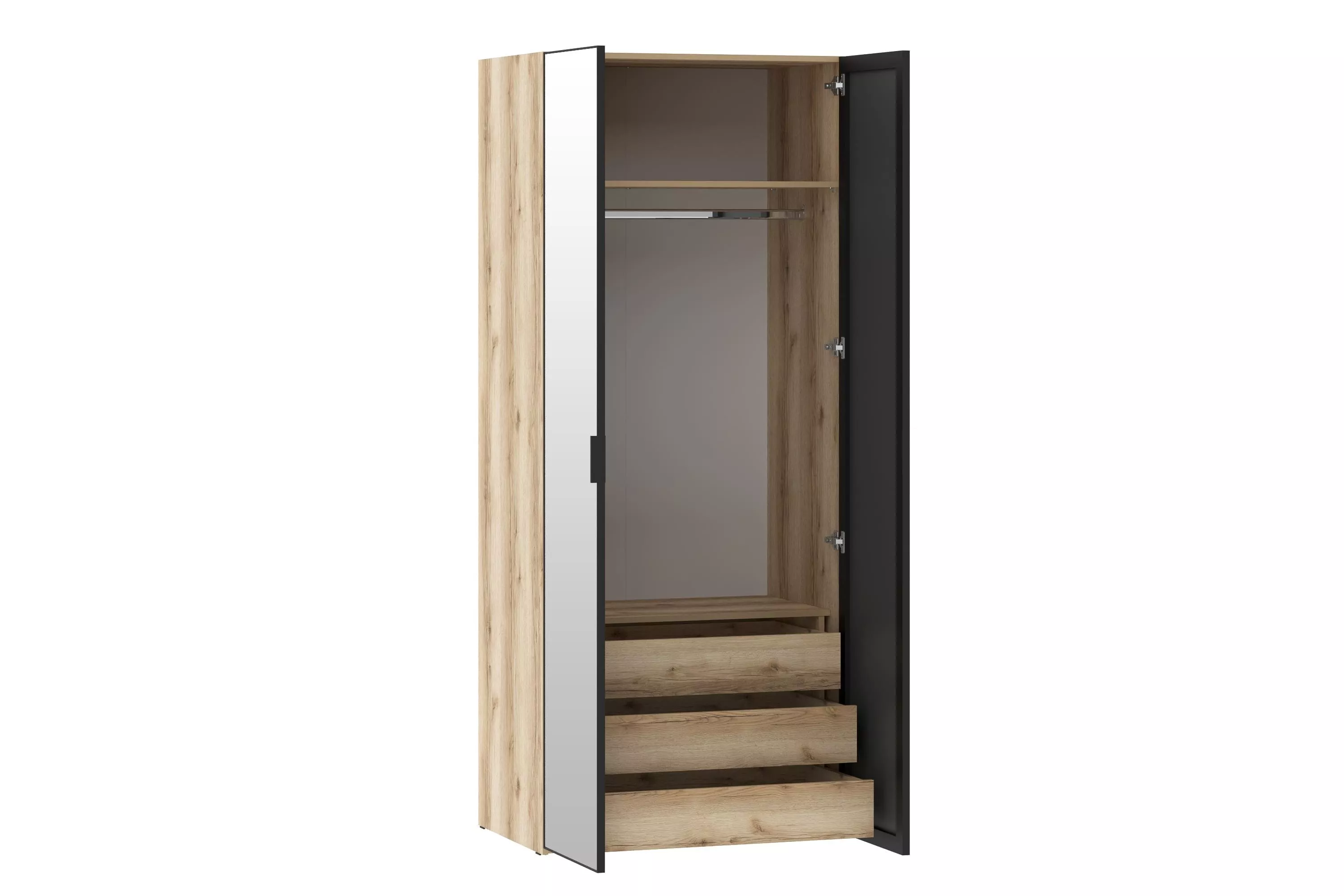 К шкафу 200.04 можно дополнительно взять полки 200.04 или ящики 200.101 для организации хранения предметов гардероба.