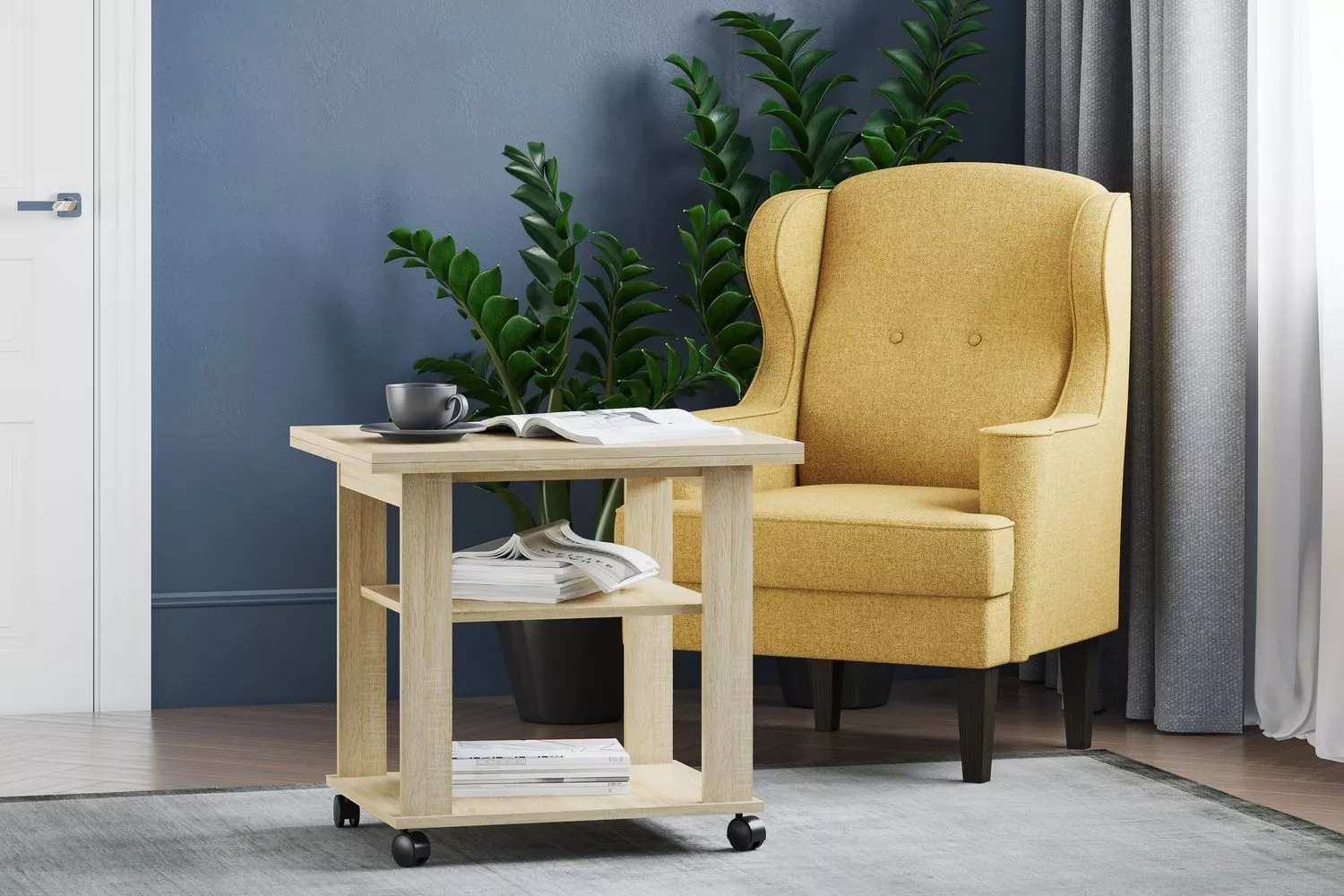 Привлекательный, стильный и компактный журнальный стол "Консул" органично впишется в интерьер даже самой маленькой комнаты. Универсальная модель подойдёт к любому по стилю интерьеру. В собранном виде его часто используют в качестве тумбочек, подставок под цветы или фотографии. Несомненный плюс – это наличие полки, которой можно пользоваться в разложенном и сложенном виде. За считанные секунды компактный журнальный стол увеличивается в два раза по габаритам, становясь просторной зоной для приёма гостей.